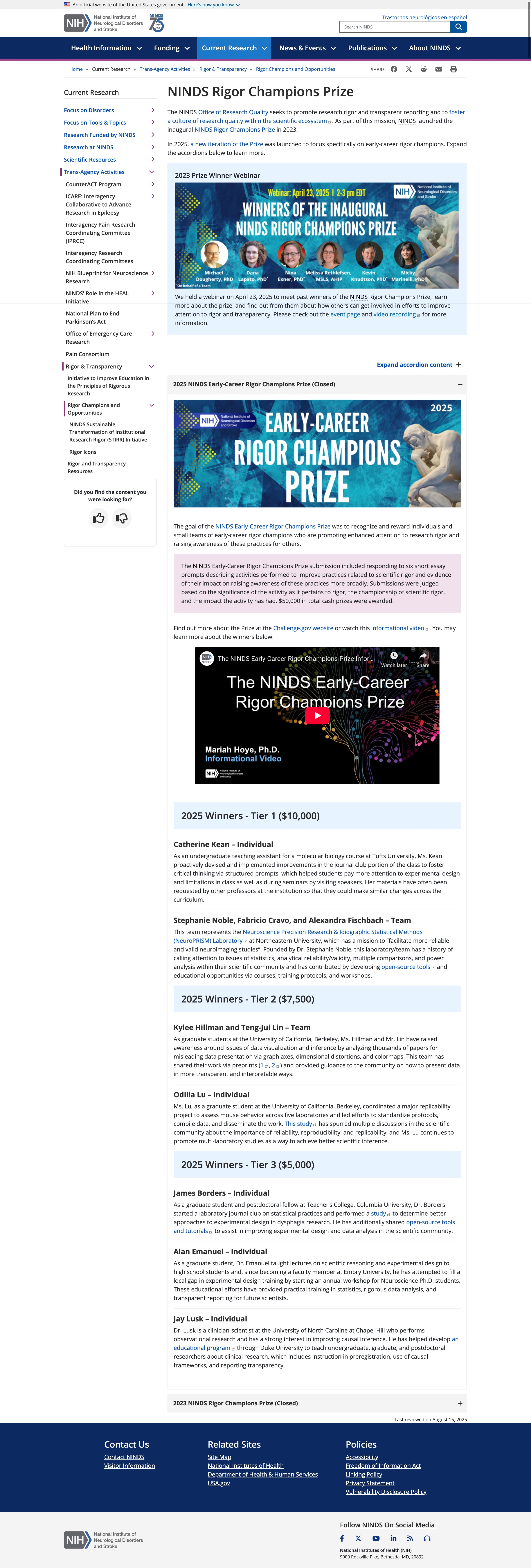 NIH NINDS Early-Career Rigor Champions Prize